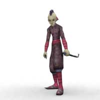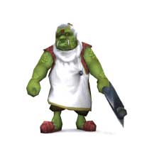 拿著菜刀掛著圍裙的綠色妖怪,四處尋找人肉作煮食材料。 |