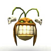 大呆呆偷看到武功秘藉練功而走火入魔,導致四處咬食生物,並把骨頭拿來裝飾。 |