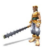 關外異族有名的勇士,揮舞著三尖兩刃戟,擊倒無數的中原士兵,更創下千人斬的紀錄,夜襲軍營把整個軍團的士兵及將領全部屠殺。 |